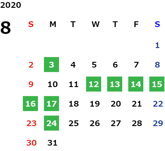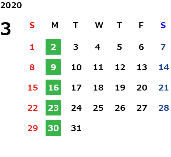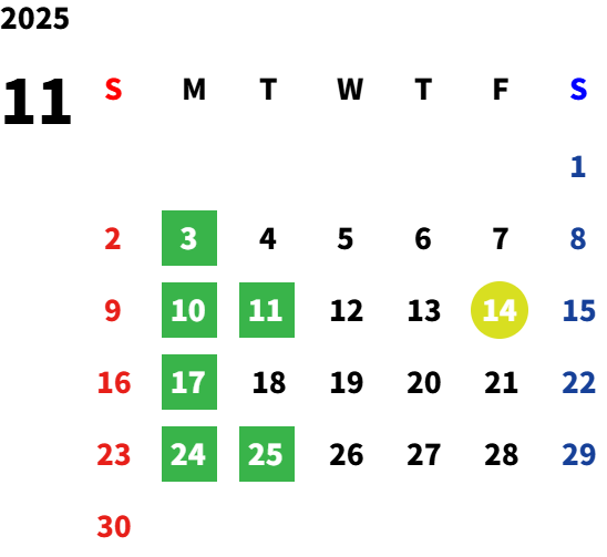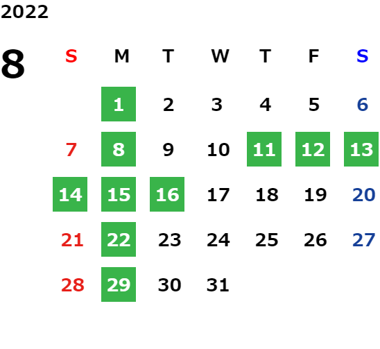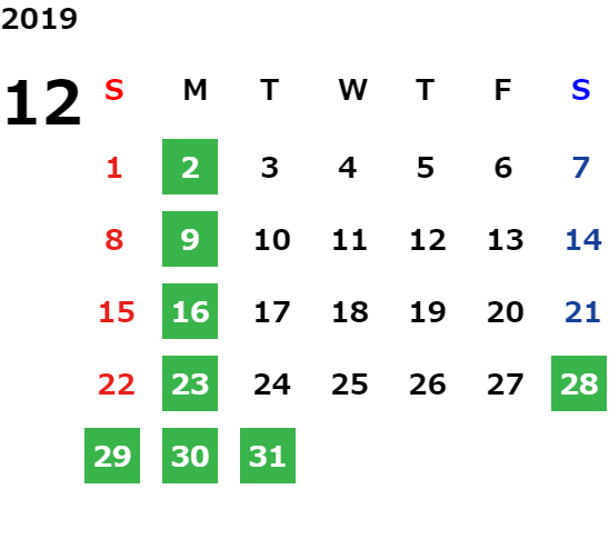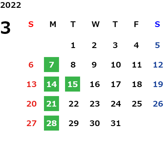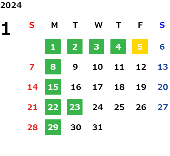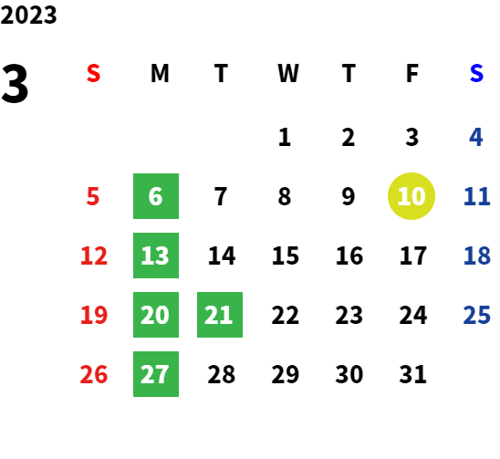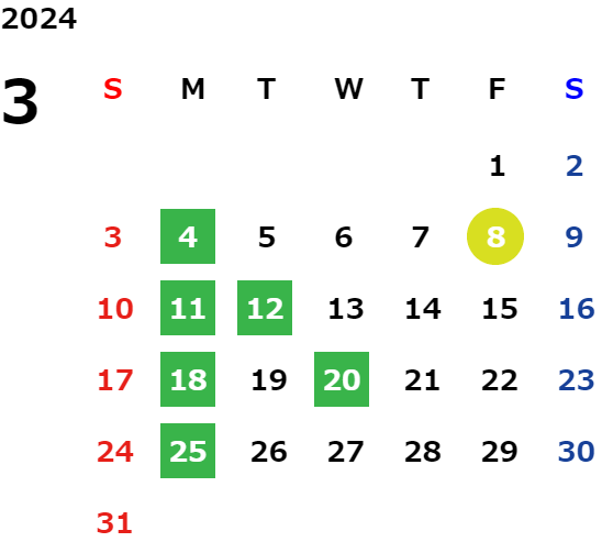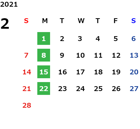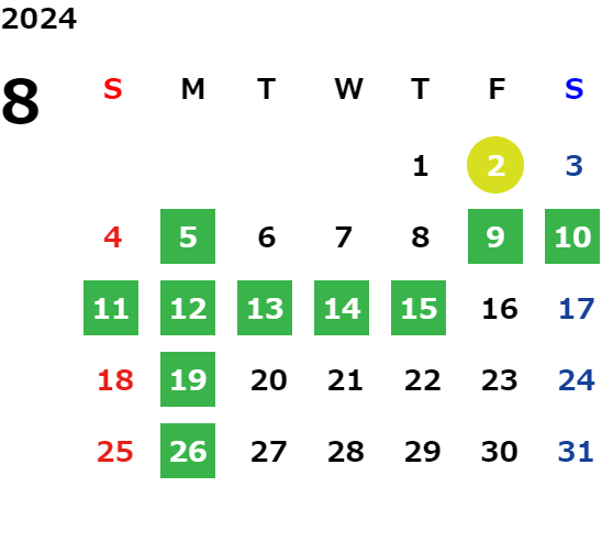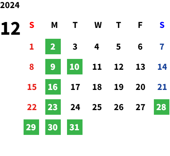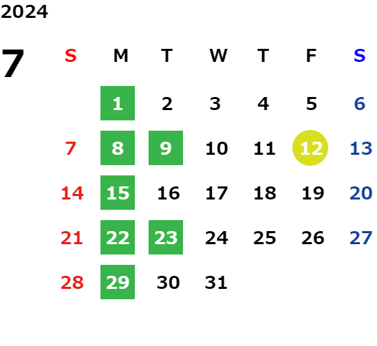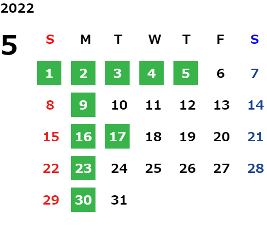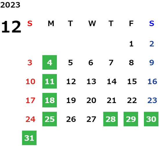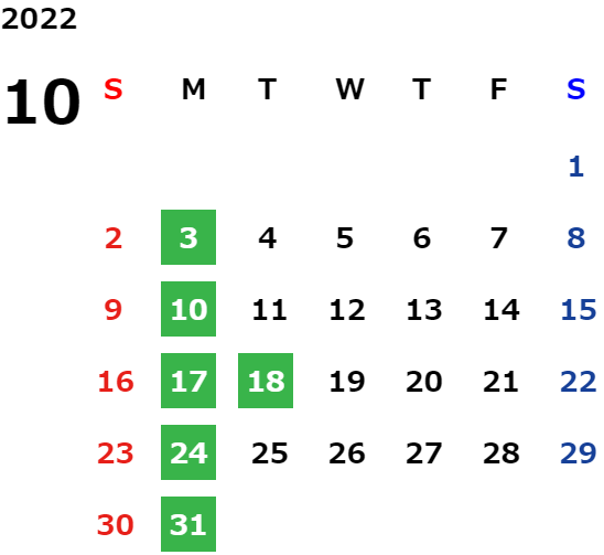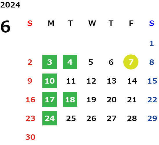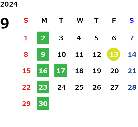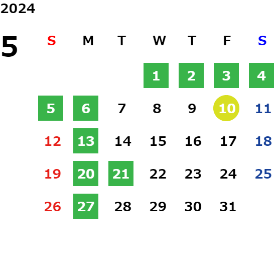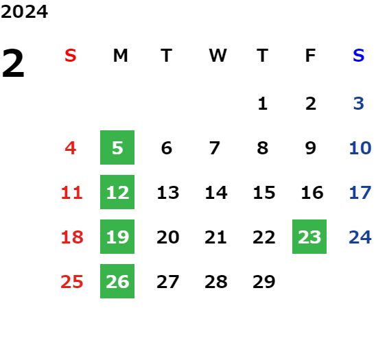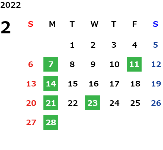 定休日:月曜・祝日 ※詳しくは営業カレンダーでご確認ください。